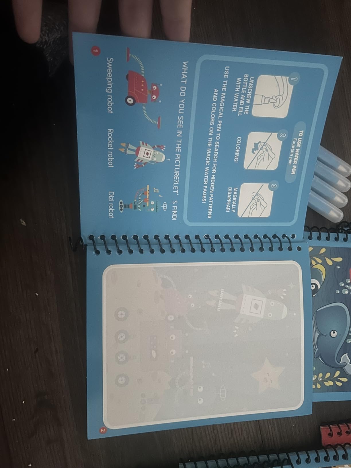 Unlike paper coloring books, this Water Coloring Book is mess-free and safe - no crayons, markers, or paints needed, just water. It has reusable pages that reset after drying for endless fun.
